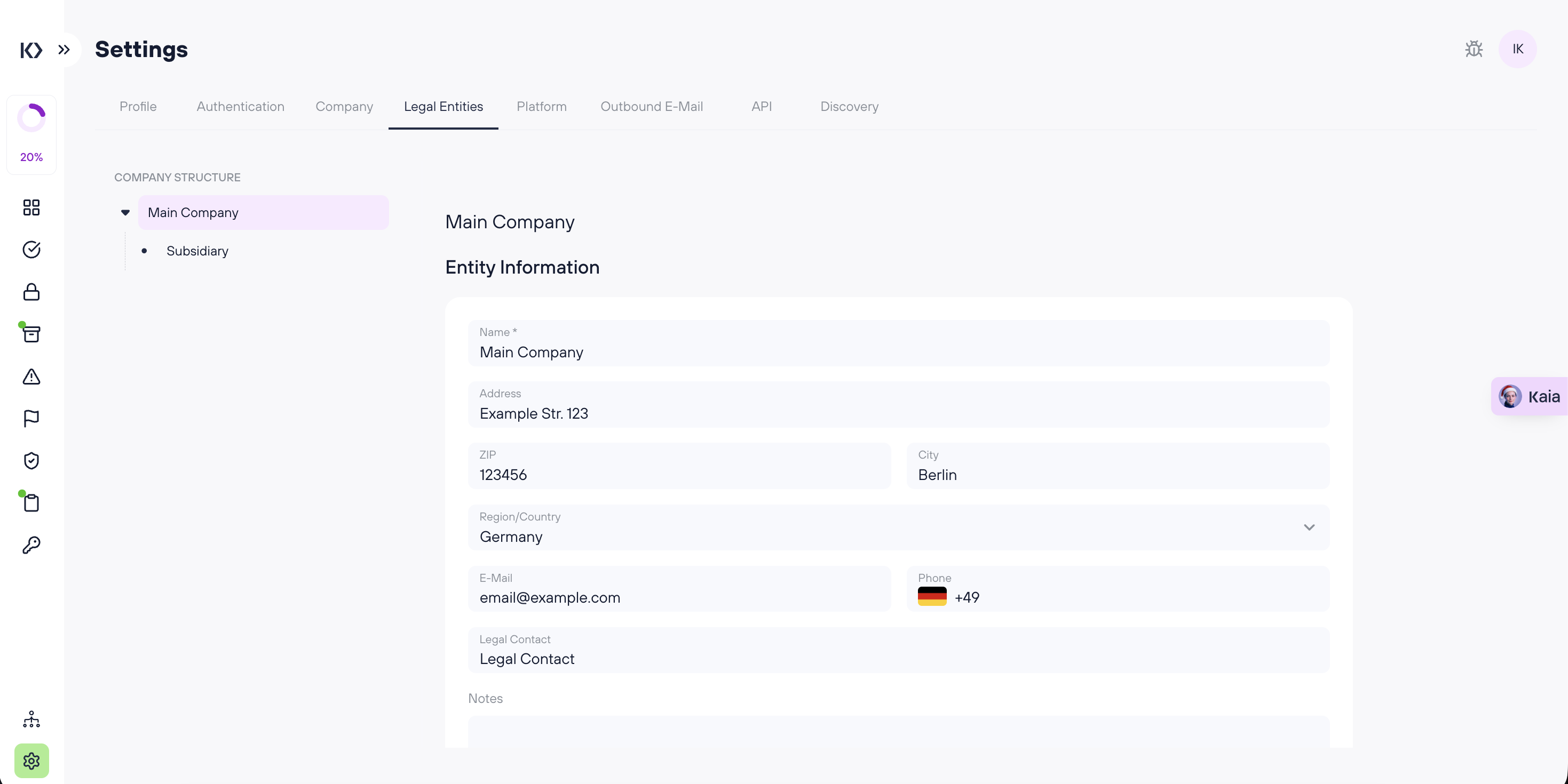 Legal Entities settings