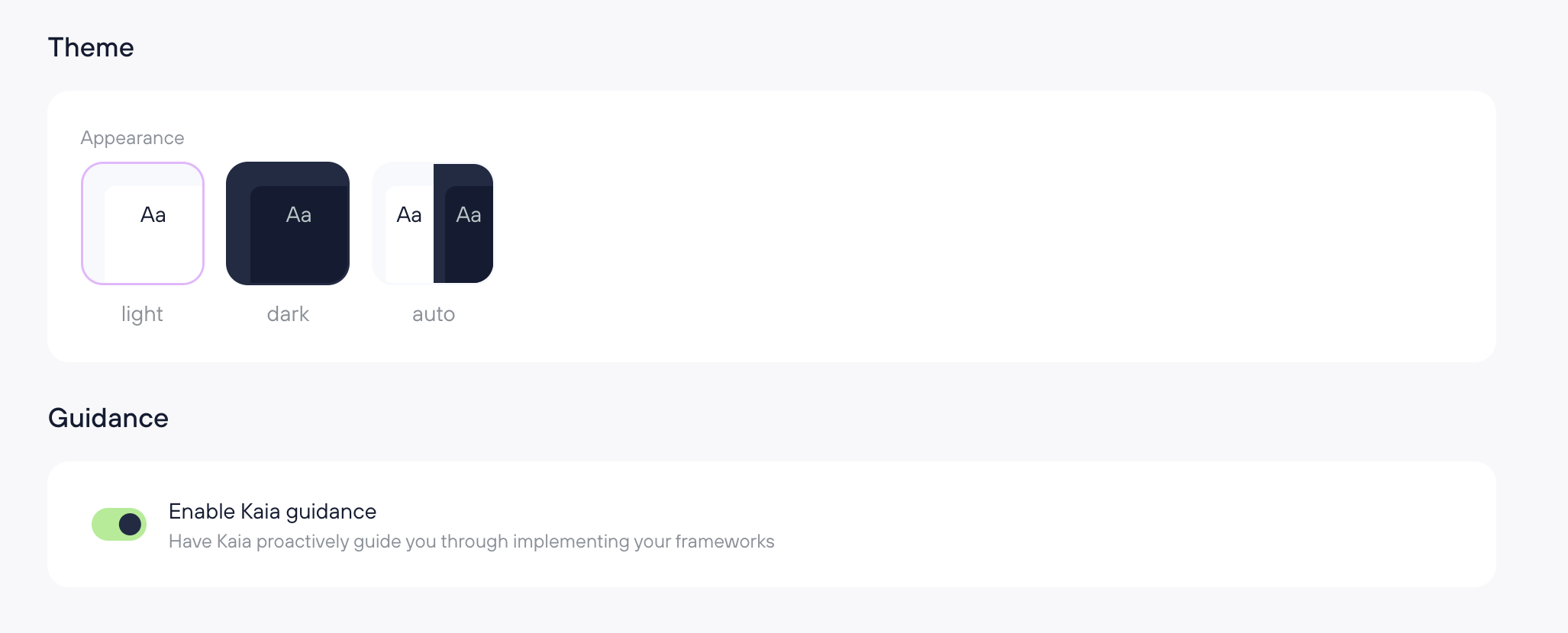 Enable KAIA Guidance (toggle)